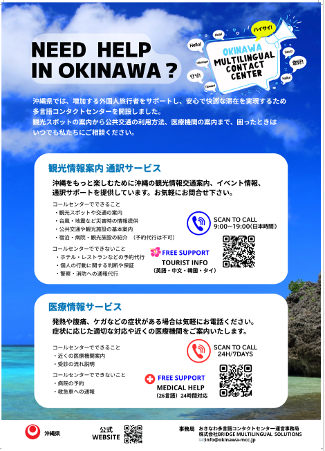 おきなわ多言語コンタクトセンターは、沖縄県が運営する外国人旅行者向け公共サービスです。