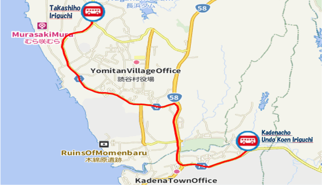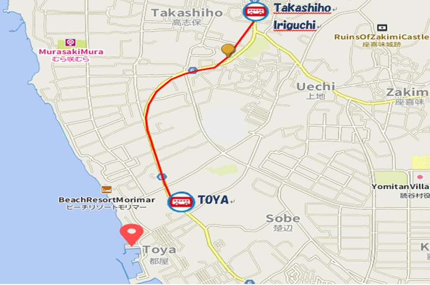 ※最寄りバス停は【座喜味】ですが、1日に6回しか停車しないのでタイミングが合えば座喜味バス停もご利用くださいね。
